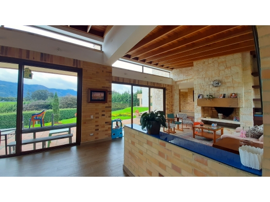 Pesos ColombianosVENDO ESPECTACULAR CASA CAMPESTRE ubicada en el Municipio de Tenjo. Area terreno de 3250 M2, área construida de 550 M2 y área privada de 500 M2, 5 habitaciones y 6 baños, 4 estudios, magnificos acabados. La calidez de la madera, grandes ventanales con magníficas vistas en todos sus costados, sus jardines, la utilización de las aguas lluvias para el riego del césped, las instalaciones preparadas para el uso de paneles solares, los muros construidos con técnicas ancestrales haciendolos más amigables con la salud de sus residentes.