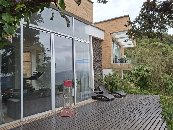 Regresando a la sala podemos dirigirnos a las 3 amplias y acogedoras habitaciones, cada una con vestier y baño privado, mediante un pasillo con luces casi a nivel de piso que se activan con sensores de movimiento, facilitando el desplazamiento de quienes desean dirigirse a la cocina. En el segundo nivel, la espectacular habitacion principal con una impactante vista, chimenea, un baño irrepetible, con accesorios de alta gama que lo hace toda una experiencia de lujo y comodidad, lleno de luz natural iluminado y como toda la casa, súper privado. Este espacio se conecta con una área que bien puede ser de estudio, y que en la actualidad es el gym para los atletas de la casa. El walking closet se destaca por ser espacioso, cómodo y con todos los detalles de lujo y sofisticación que toda mujer sueña. Son muchos los aspectos tenidos en cuenta en la construcción de esta inigualable casa, hecha con amor para una familia que ama el bienestar, el calor de hogar y la buena vida en conexión con la natualeza.